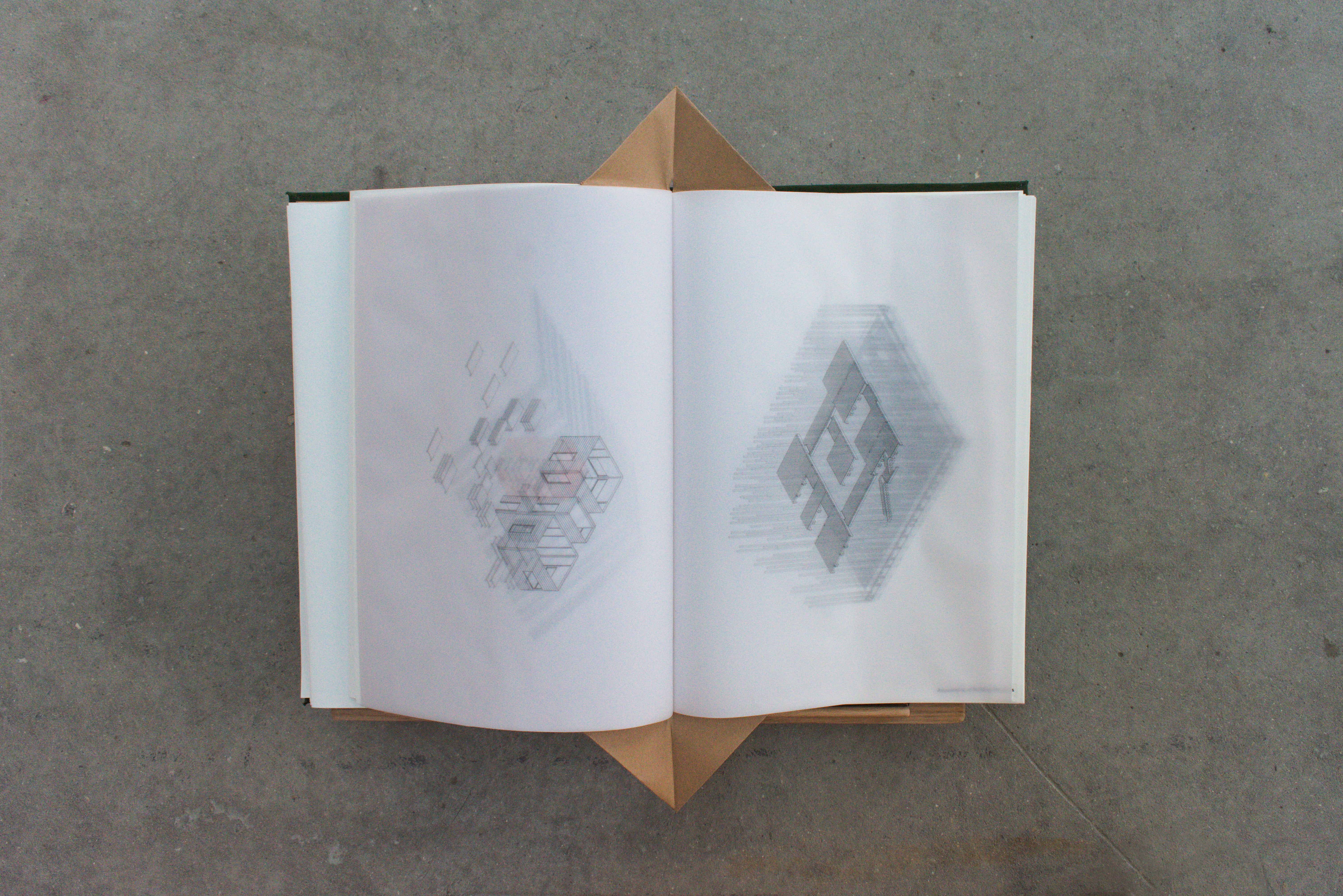 design methodology explores alternative modes of representation through bookbinding experiments. Book and building are thus bound through the development of the project, as well as the materials, tectonics, and atmosphere of the space. The final drawings are housed in a tome that brings the reader into direct physical contact with the project, linking the experiential values of the building into the materials and tactility of the book.